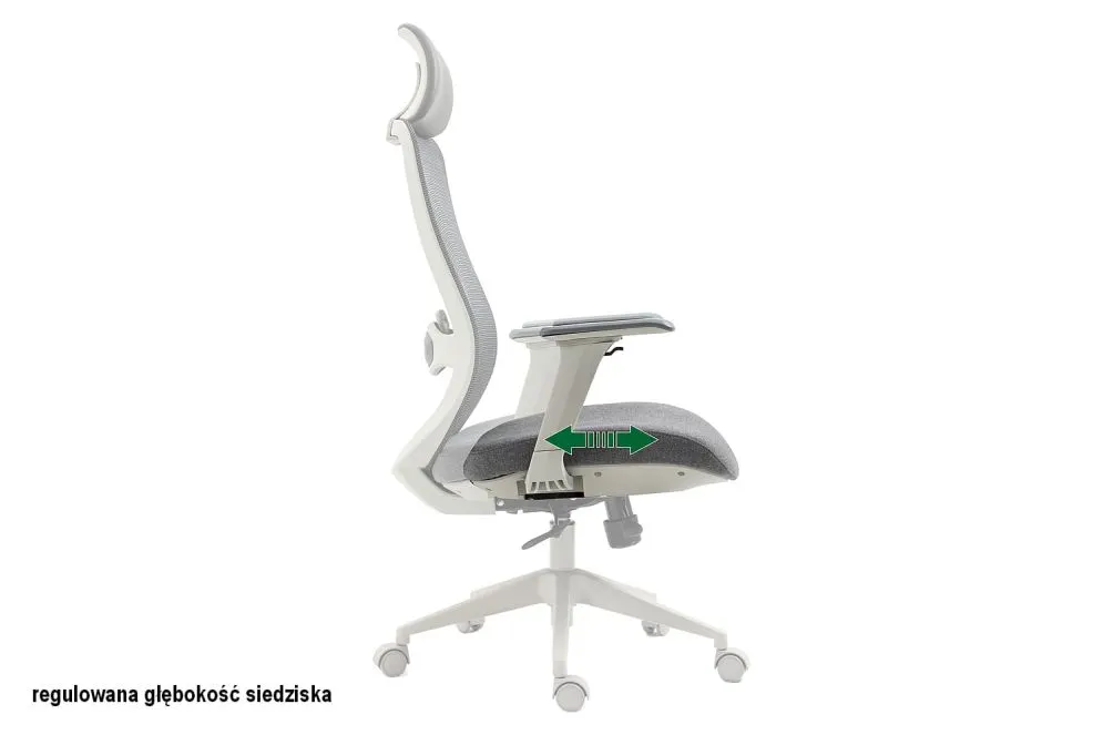 - Maksymalna personalizacja: Podłokietniki 4D, regulacja głębokości siedziska, zagłówka i wsparcia lędźwiowego.