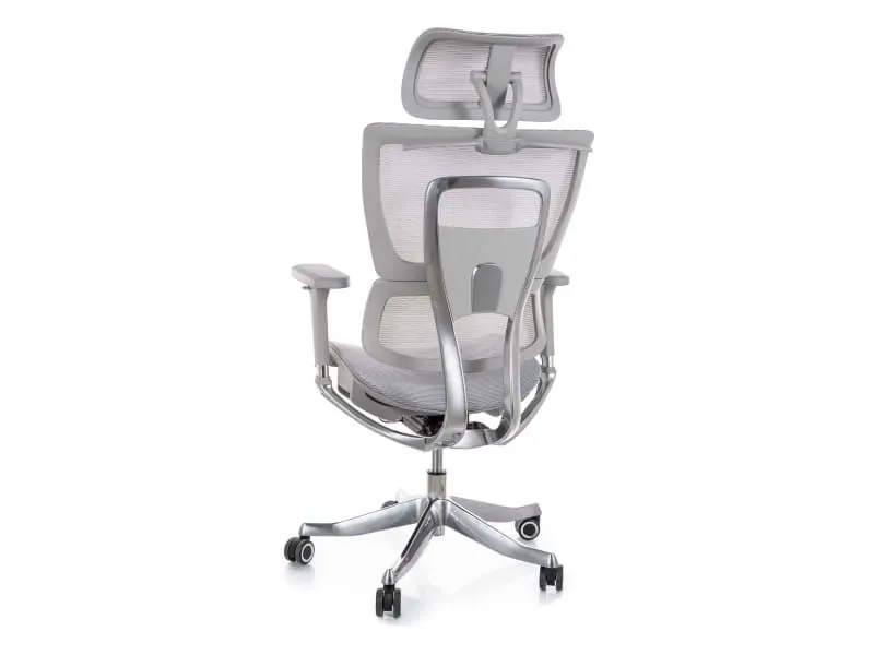 Siedzisko wykończone siatką posiada zaokrągloną, lekko pochyloną krawędź przednią, która eliminuje ucisk i zapobiega drętwieniu nóg. Regulacja głębokości siedziska (+/- 5 cm) pozwala na optymalne podparcie ud, szczególnie u wyższych użytkowników. Oparcie z elastycznej siatki, wyposażone w tzw. muldę lędźwiową, dba o prawidłowe ułożenie kręgosłupa. Dzięki regulacji wysokości (+/- 8 cm) i regulowanemu zagłówkowi (+/- 6 cm), każdy użytkownik może znaleźć idealną pozycję.