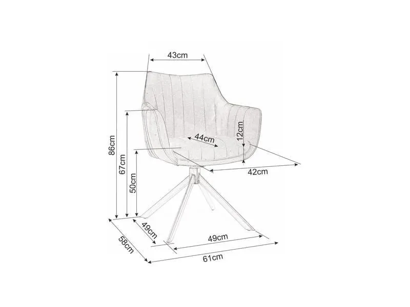 Krzesło z podłokietnikami AZALIA BREGO w klasycznym szarym kolorze to definicja elegancji i komfortu. Ten nowoczesny mebel został stworzony, by idealnie komponować się z wnętrzem jadalni, salonu, a nawet domowego biura. Jego konstrukcja opiera się na stabilnych, metalowych nogach w formie krzyżaka, które zapewniają trwałość i bezpieczeństwo. Kluczowym elementem jest funkcja obrotu o 180°, która znacząco zwiększa wygodę i swobodę poruszania się.