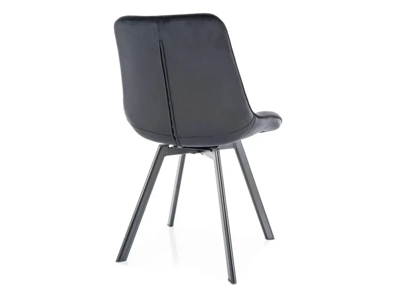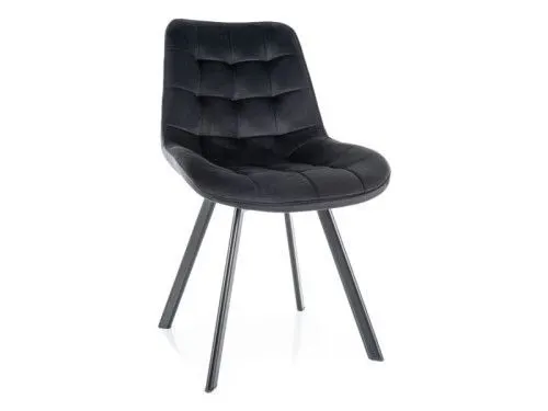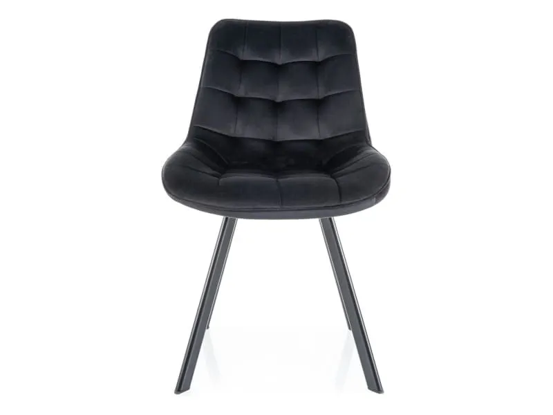 Oparcie i siedzisko krzesła tapicerowane są miękką tkaniną aksamitną, a ozdobne pikowania dodają mu niepowtarzalnego uroku. Solidny stelaż wykonany z metalu w kolorze czarnym zapewnia nie tylko doskonałą stabilność, ale również stanowi piękny element dekoracyjny.