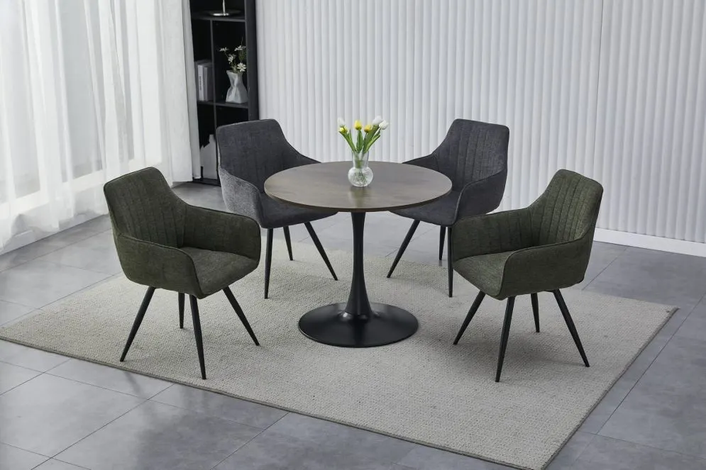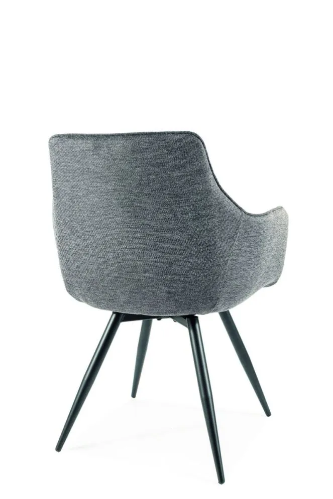 Siedzisko krzesła jest obrotowe, co umożliwia swobodne poruszanie się bez konieczności odsuwania mebla od stołu. Wysokie podłokietniki zapewniają dodatkowe wsparcie dla ramion, pozwalając na pełen relaks. Obicie wykonano z wysokiej jakości tkaniny Brego w kolorze ciemnoszarym, która jest miękka w dotyku i łatwa w utrzymaniu czystości. Jakość produktu potwierdza 2-letnia gwarancja producenta.