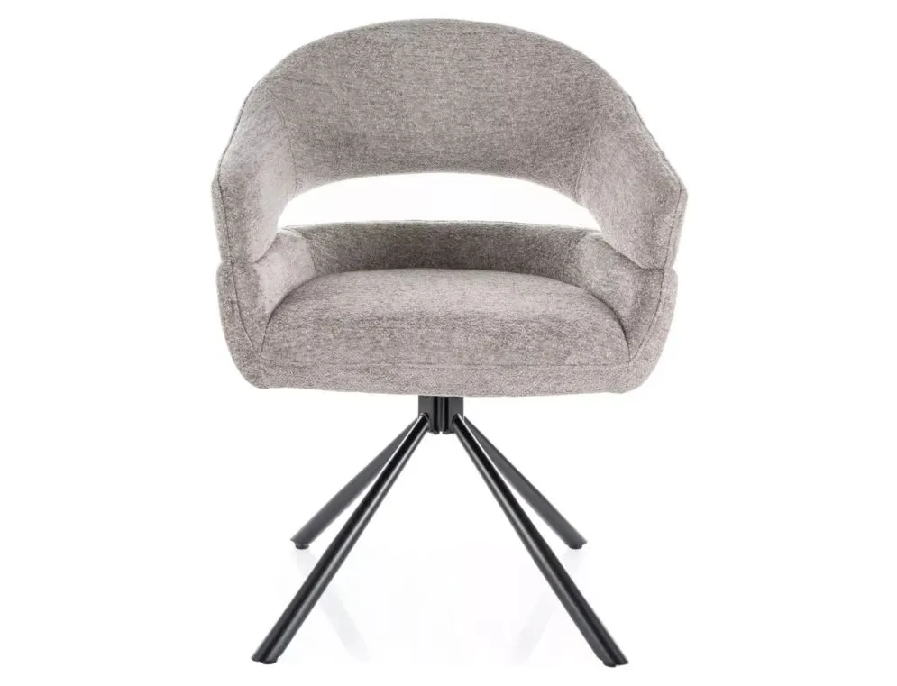Stabilność zapewnia solidna, krzyżakowa podstawa z metalu malowanego na czarno. Krzesło z podłokietnikami BORGO posiada funkcję obrotu z mechanizmem powrotu do pozycji wyjściowej. Jego neutralna barwa i minimalistyczna forma sprawiają, że idealnie komponuje się z naturalnymi materiałami, takimi jak drewno czy kamień. To uniwersalny mebel, który sprawdzi się w jadalni, salonie, a także w eleganckim biurze.