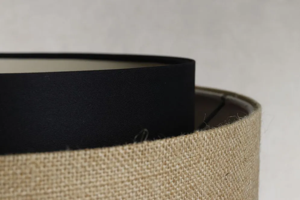 - abażur wykonany z tkaniny jutowej i satynowej czarnej na tworzywie sztucznym,