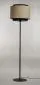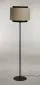 Stabilna podstawa lampy została wykonana z metalu malowanego proszkowo na czarny kolor, co gwarantuje jej trwałość i odporność na uszkodzenia. Wygodny włącznik nożny umożliwia szybkie i komfortowe zapalanie światła. Lampę wyposażono w podwójny abażur o klasycznym, cylindrycznym kształcie. Wykonany z tworzywa PCV pokrytego beżową tkaniną jutową i czarną tkaniną satynową, prezentuje się niezwykle stylowo. Wnętrze abażuru utrzymano w kremowej tonacji, która subtelnie rozprasza światło.