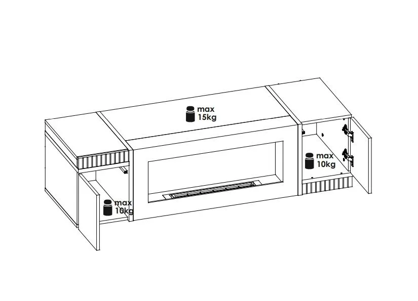 - 1x Szafka RTV z biokominkiem: 150x42x50