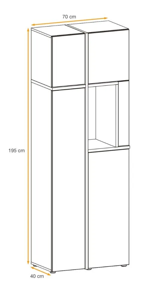 - 1x Witryna wysoka: 70x195x40