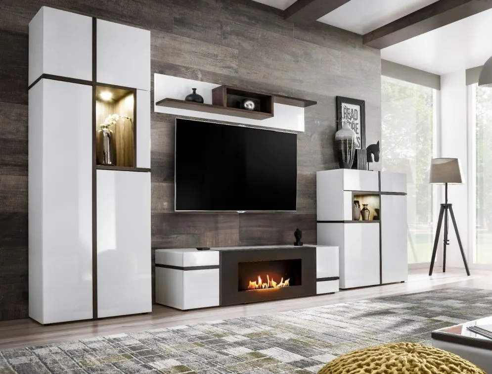 Meblościanka CROSS LED biała z biokominkiem