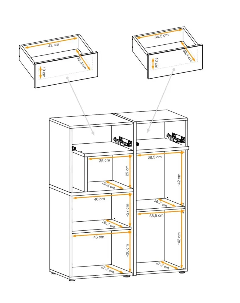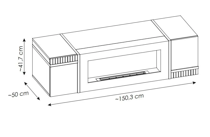 - 1x Szafka RTV z biokominkiem: 150x42x50