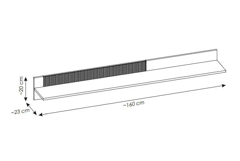 - Solidne wykonanie: Półka została wykonana z płyty laminowanej oraz płyty MDF pokrytej folią PCV, co zapewnia trwałość i odporność na codzienne użytkowanie. Ma 160 cm długości i maksymalne obciążenie 3 kg, dzięki czemu świetnie sprawdzi się jako miejsce na dekoracje, drobne rośliny, zdjęcia czy niewielkie książki.