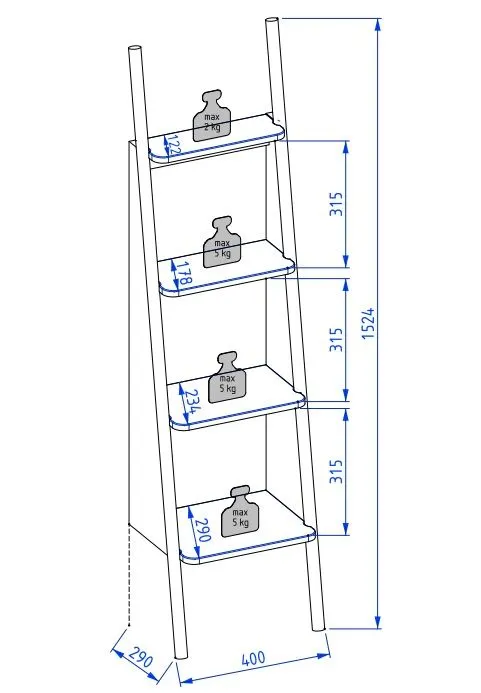 - Cztery półki z lakierowanej płyty MDF 16 mm.