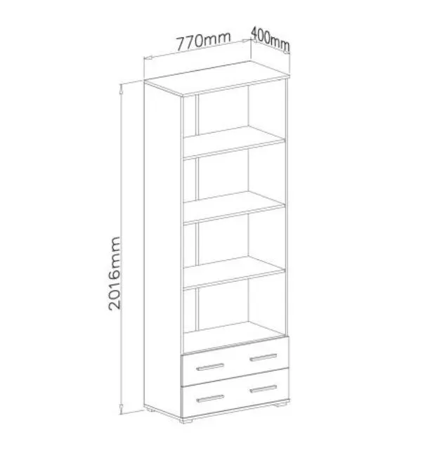 Dodatkową zaletą regału są dwie pojemne szuflady znajdujące się w dolnej części mebla. Doskonale nadają się do przechowywania drobnych przedmiotów, odzieży czy materiałów biurowych, zwiększając funkcjonalność regału i ułatwiając organizację przestrzeni.