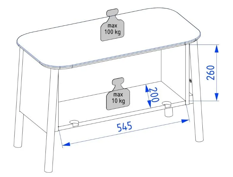 - Blat/siedzisko z lakierowanego MDF w kolorze białym.