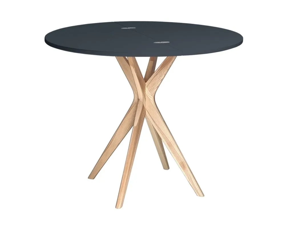 Stół półokrągły CUTTI 90x90 rozkładany grafitowy/jesion