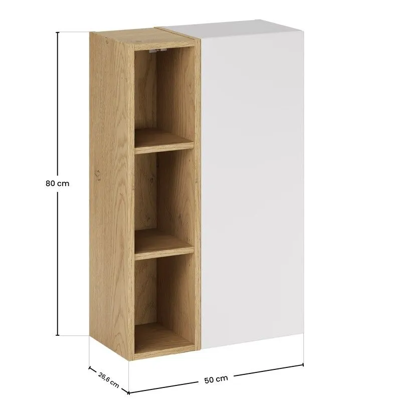 Szafka łazienkowa ASTER WHITE 1D 30cm biały mat/dąb cremona zestaw 50cm z regałem