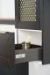 Design szafki CHIC konsekwentnie nawiązuje do całej kolekcji. Ażurowe detale frontów, inspirowane historyczną sztukaterią, tworzą zjawiskową grę światła i faktur. Dolna szuflada wyposażona jest w elegancki, złoty uchwyt krawędziowy, podczas gdy górne drzwiczki otwierają się za pomocą nowoczesnego systemu "push-to-open". Wewnątrz szafki znajdują się dwie szklane półki, które dodają całości lekkości.