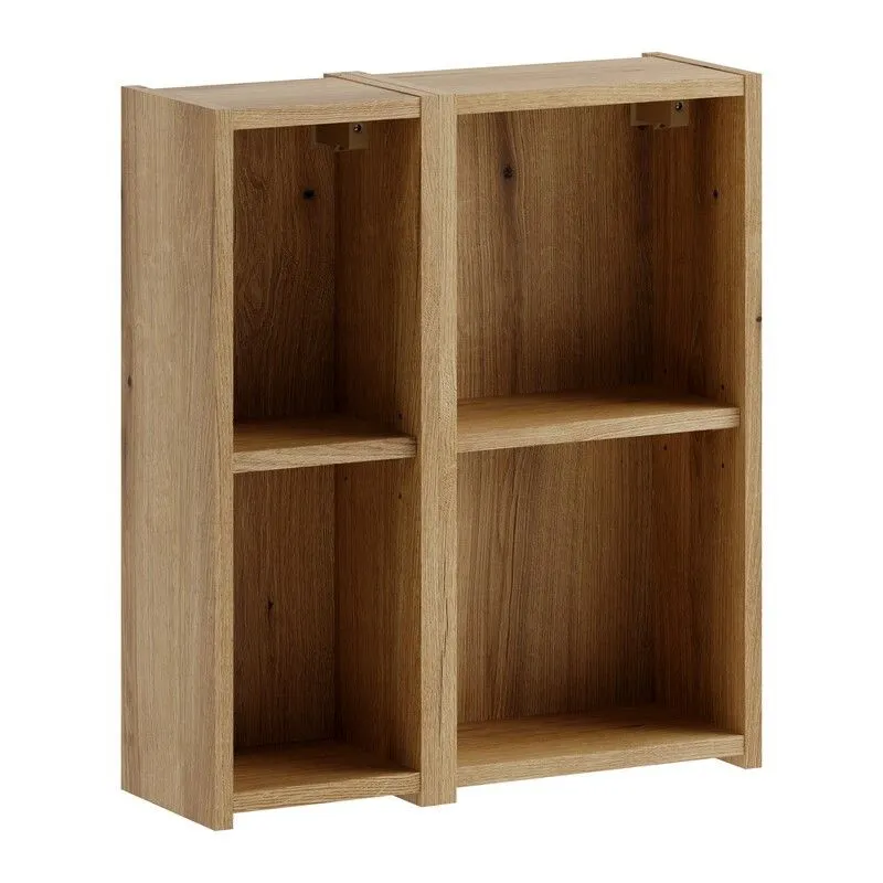 Wybarwienie w odcieniu dąb coast evoke nadaje meblowi elegancji i ponadczasowego charakteru. Regał posiada dwie solidne półki, które dzielą przestrzeń na trzy praktyczne poziomy, idealne do segregacji akcesoriów pielęgnacyjnych, flakonów czy ozdobnych świec.