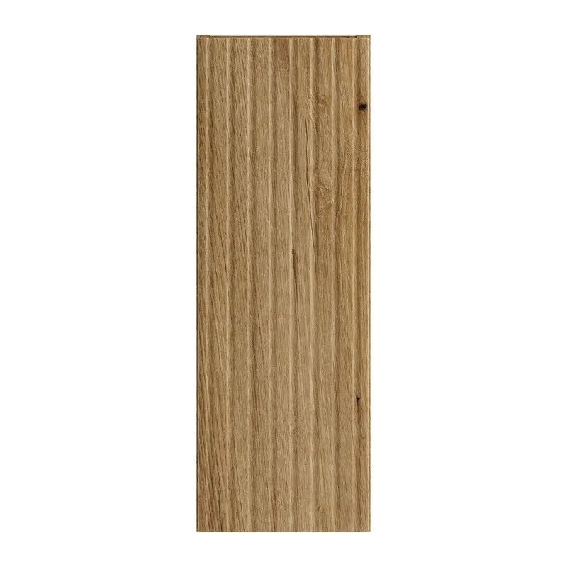 Wykończenie w kolorze dąb coast evoke sprawia, że szafka wygląda szlachetnie i naturalnie. Ryflowany front z płyty MDF nadaje jej trójwymiarowej głębi, dzięki czemu mebel – mimo swoich niewielkich rozmiarów – przyciąga wzrok i podkreśla charakter wnętrza.