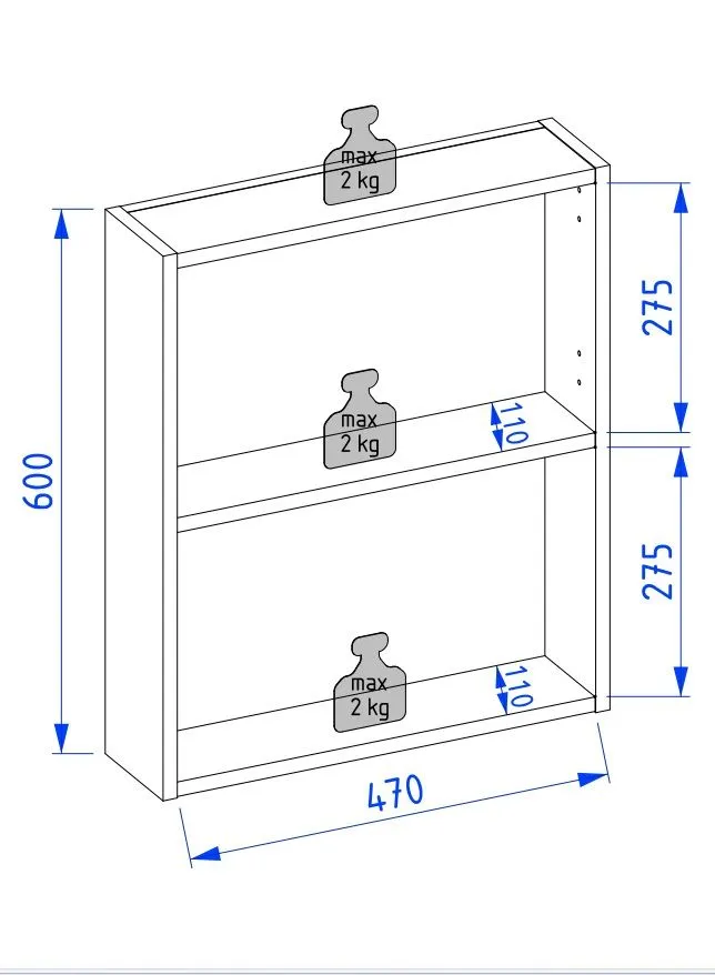 - Jedna półka wewnętrzna i jedna półka otwarta.