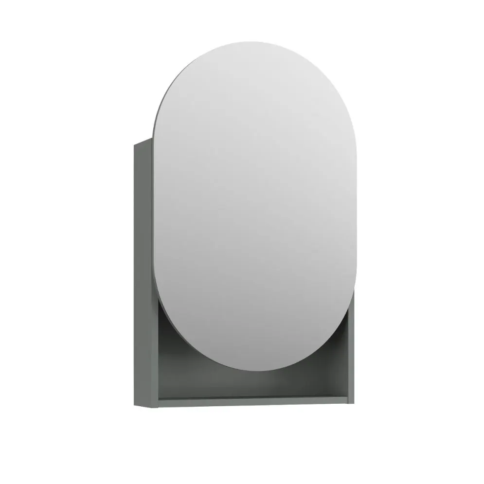 Szafka lustrzana MOSS 50 cm szaro-zielona – Design i funkcjonalność w owalnej formie