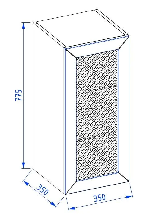 - Front z lakierowanej płyty MDF 16 mm z frontem z perforowanej stali i złotą metalową siatką w tle.