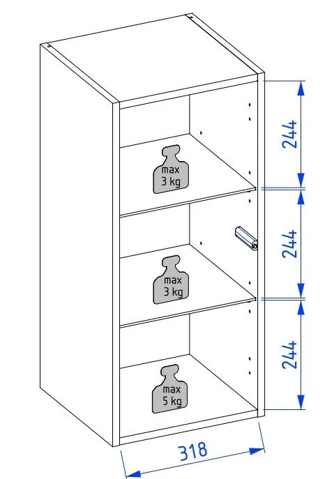 - Korpus z lakierowanej płyty meblowej 16 mm w kolorze białym półmatowym.