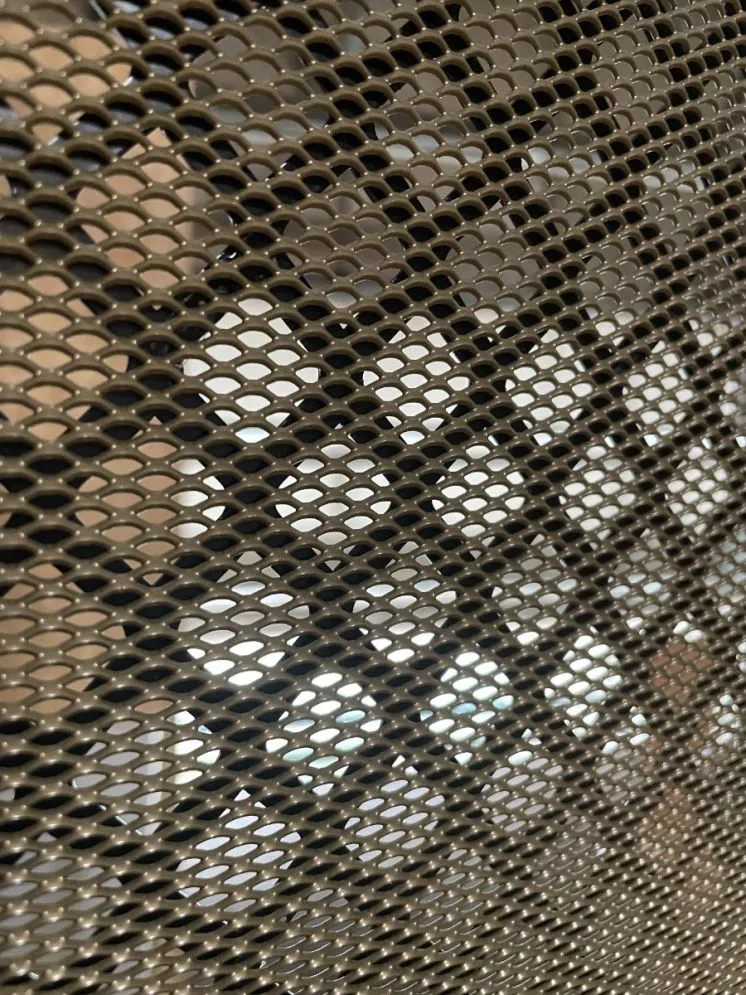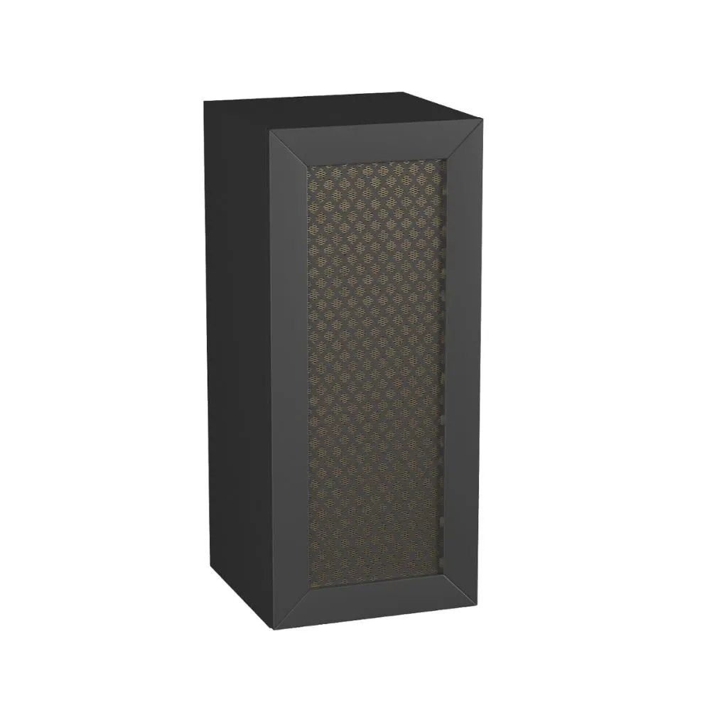 - Front z lakierowanej płyty MDF 16 mm z frontem z perforowanej stali i złotą metalową siatką w tle.