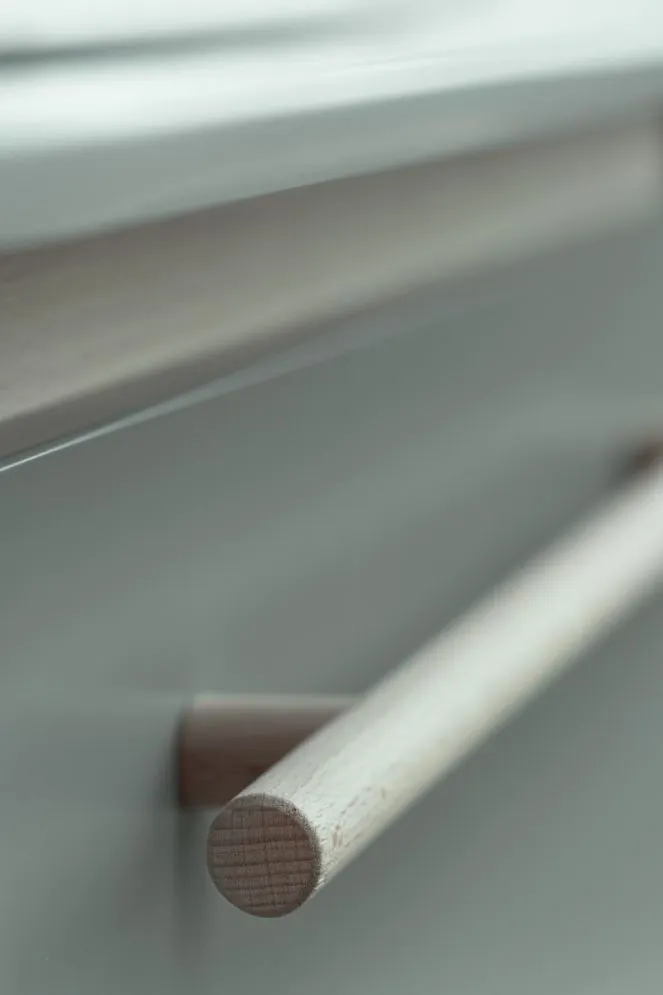 - Nogi i uchwyty wykonane z naturalnego drewna bukowego.