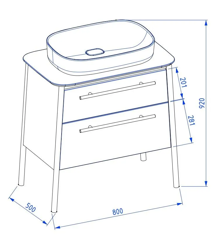 - Stojąca szafka pod umywalkę nablatową.