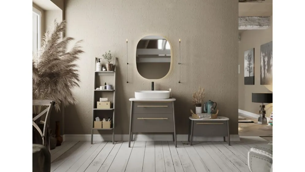 Szafka DUKLA w kolorze beżowej szarości doskonale romansuje z różnymi stylami – od retro, przez vintage i eko, aż po nowoczesne wnętrza, w których design i porządek mają szczególne znaczenie. Zestaw ją z innymi elementami kolekcji – regałem, siedziskiem i lustrem z klimatycznym oświetleniem – aby stworzyć spójną i zachwycającą aranżację.