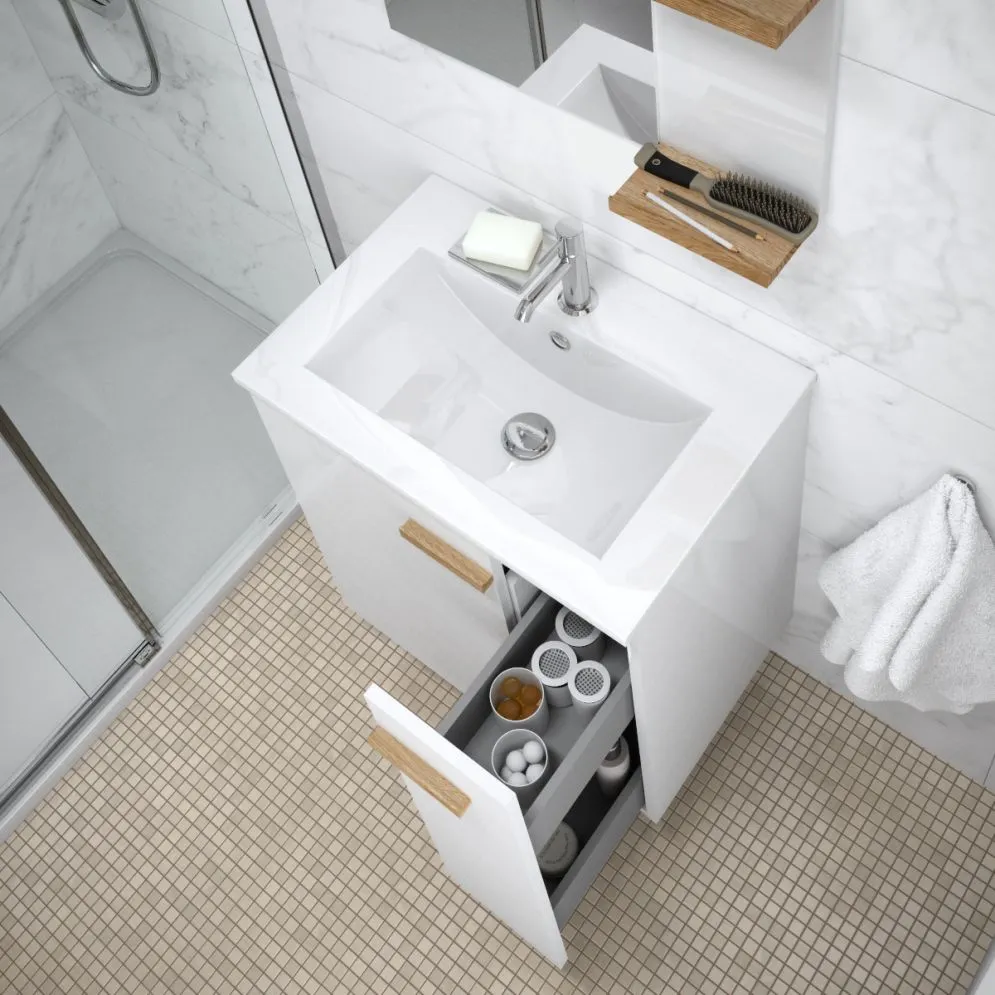 Szafka pod umywalkę L-WOOD 59 cm biała – Nowoczesny design i inteligentne przechowywanie