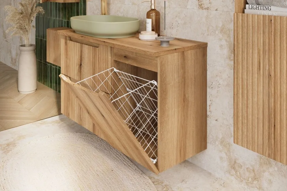 Szafka pod umywalkę nablatową NOVA COAST EVOKE 2S 60cm dąb coast evoke - zestaw 100cm z koszem na pranie i blatem